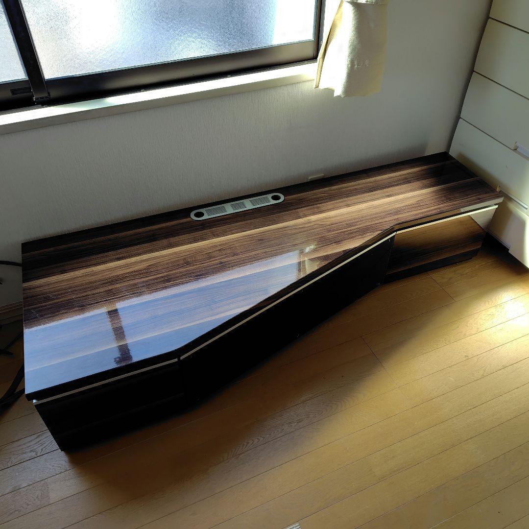 引っ越し後の部屋に合わなくなったので出品します。\r使用から約2年経過しています。\r\r全体的に状態は良い方だと思いますが、やや傷汚れがあります。\r写真11枚目以降に目立つ傷を添付しました。\r中古が気になる方はご遠慮ください。\r\r付属品については添付画像を参照ください。\r・5mmのレンチが付属していません。\r・テレビ取付用備品はM4だと思われるネジが4本付属しています。\r\r新しく購入したテレビスタンドの梱包材を再利用して分解して発送します。\r素人梱包になる点はご了承ください。\r\r-----------------\r以下Amazonから転載の商品紹介文です。\r-----------------\r【サイズ】外寸:幅70×奥行48×高さ110~169cm 棚板:幅45×奥行25cm 【重量】約17kg\r【対応テレビサイズ】32~77インチ\r【材質】前板・土台・棚板:合成樹脂化粧繊維板 / 支柱部分:スチール【セット内容】テレビスタンド 、棚板1枚、テレビ取付ネジセット、転倒防止ワイヤー\r【耐荷重】総積載耐荷重:約50kg / テレビ取付部:約40kg以下(77型テレビ以下・VESA規格対応)/ 棚板:約5kg / 土台:約30kg\r【備考】※キャスターの取り外しはできません。 ※キャスターにストッパーは付いておりません。 ※別売の【棚板】or【サウンドバー棚板】の追加取り付けは、いずれかを+1枚までとなります。 ※2023年11月8日より対応テレビサイズを65型から77型に変更しました(製品仕様は以前のものと変更ありません)。 ※説明書には旧表記の【取り付け最大サイズ65v】と表記されておりますが、製品自体は最大77型対応となります